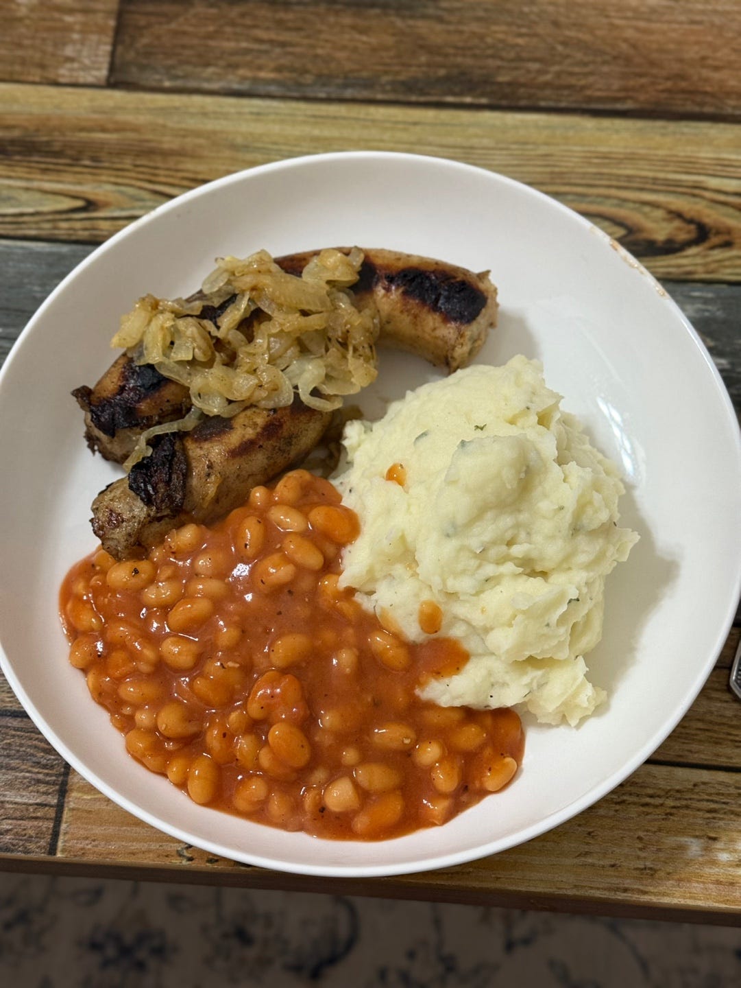 For dinner that night I cooked bangers and mash with some baked beans. The sausage were alright like a 6/10, I'd eat them again but they weren't like good English sausages. Mash and heinz beans were solid though.